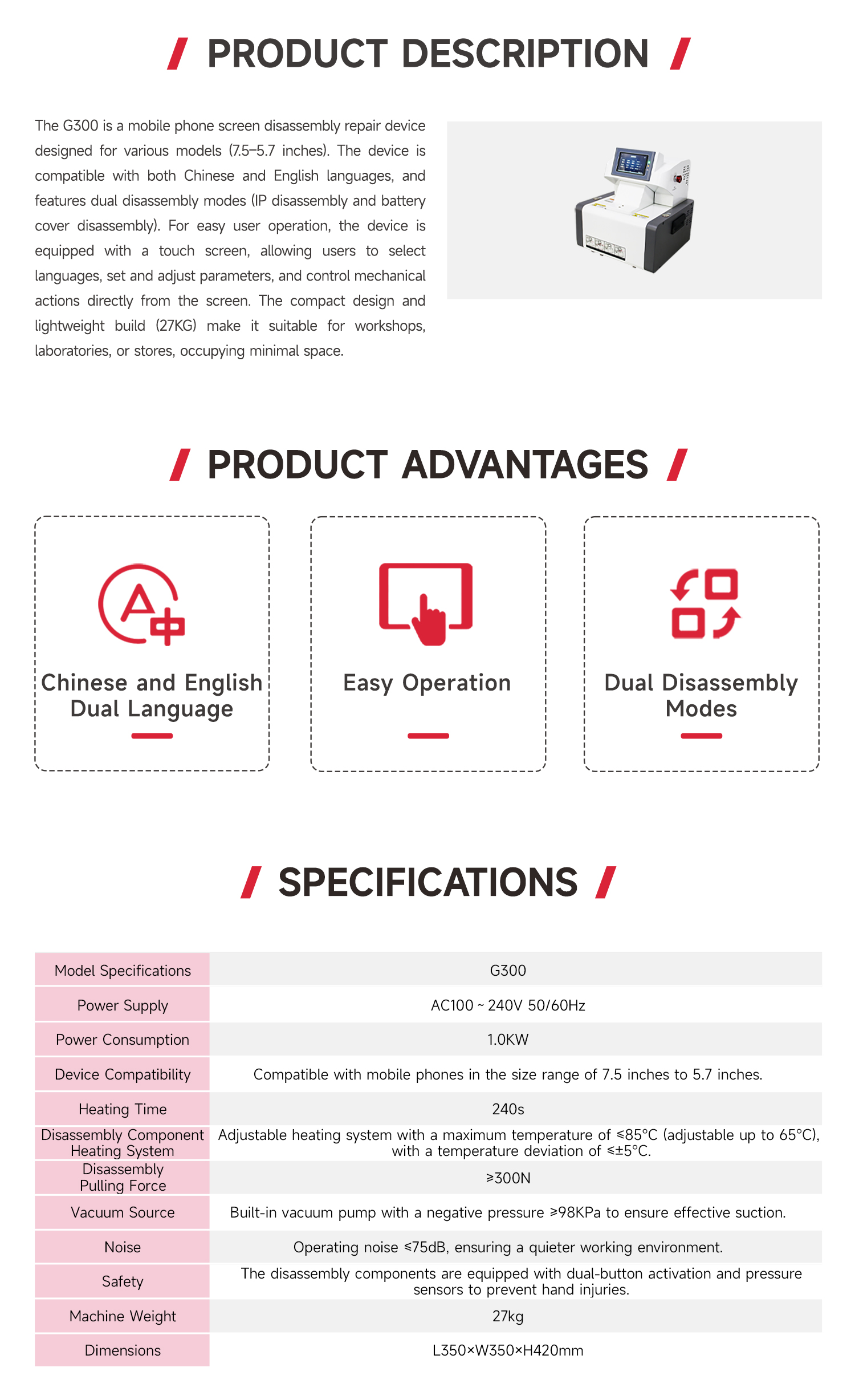 G300 automatic disassembly platform
